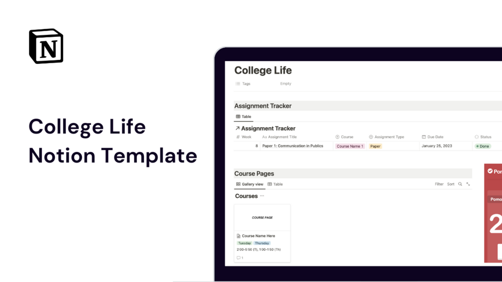 College Notion Template: Assignment Tracker and Course Organizer